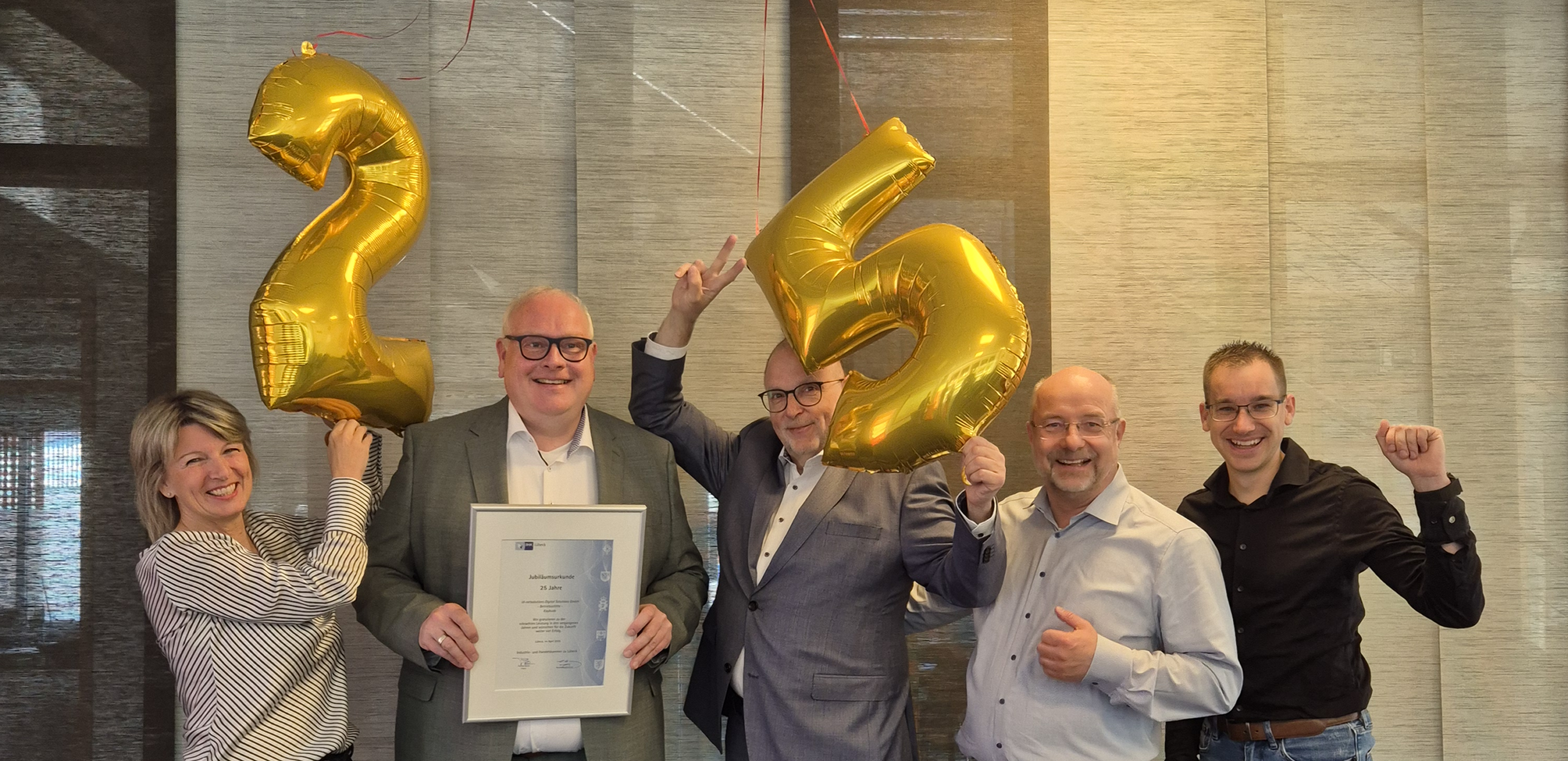 Ein Vierteljahrhundert voller Innovation, Beständigkeit und echter Leidenschaft für den Mittelstand: Wir feiern in diesem Jahr unser 25-jähriges Bestehen. In einer feierlichen Stunde in der Unternehmenszentrale in Kayhude wurde dieses besondere Jubiläum offiziell durch die IHK zu Lübeck gewürdigt.